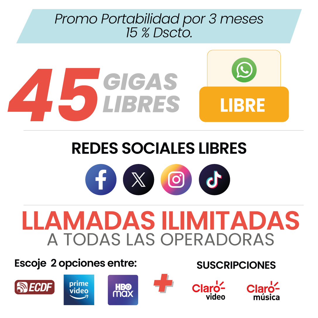 El Plan te entrega 45 GB de datos 4G LTE para navegar, trabajar, ver contenido en streaming y usar todas tus aplicaciones favoritas a alta velocidad. El plan incluye gigas libres para roaming, lo que te permite usar tu línea Claro Ecuador en los países de destino habilitados sin preocuparte por cargos inesperados durante tus viajes.